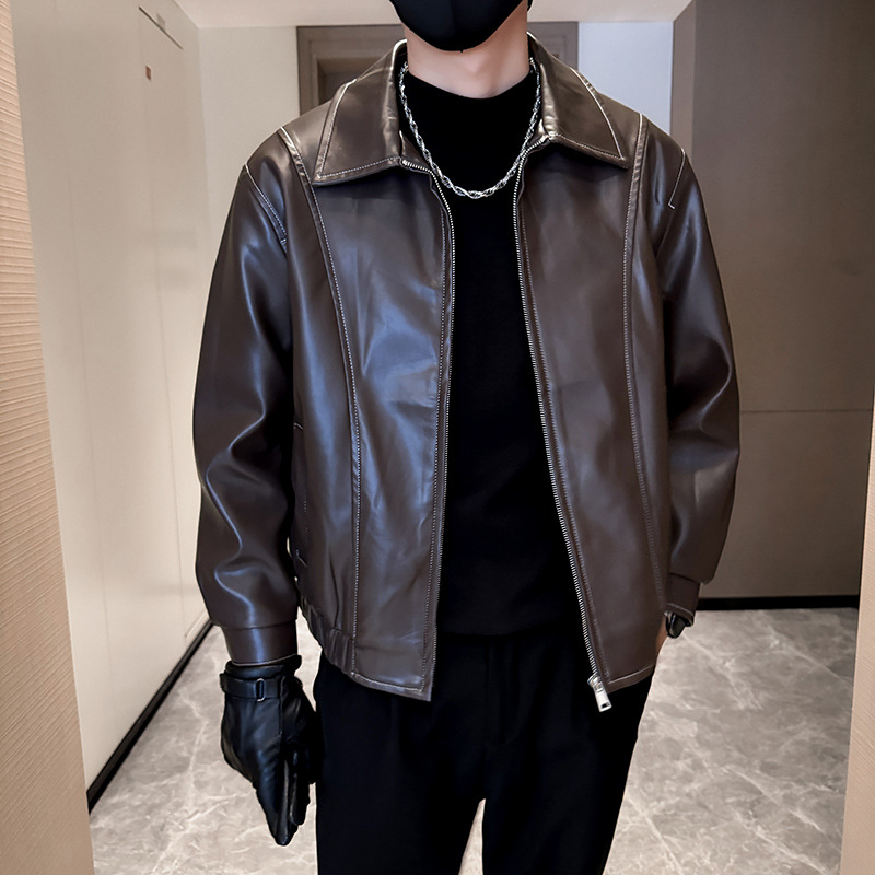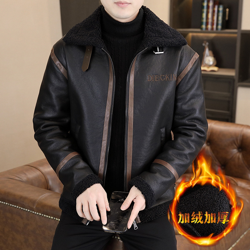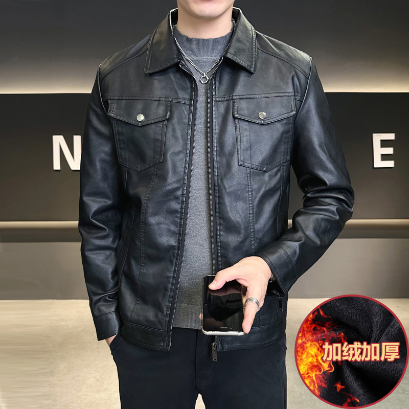 24秋冬新作メンズ韓国版カジュアル保温店主風ベルベット厚手無地レザージャケット