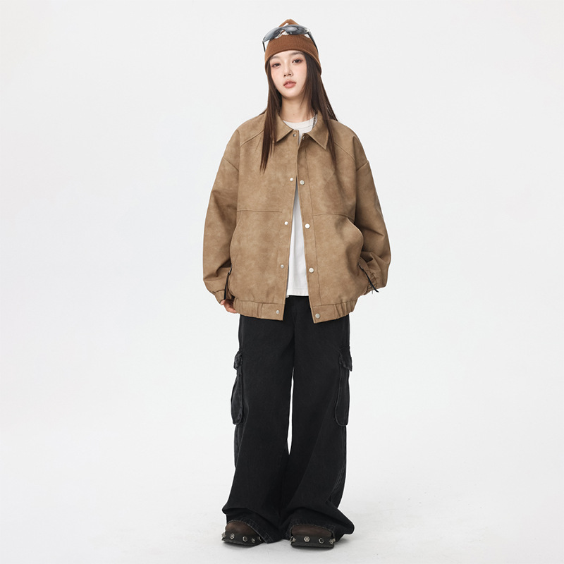 2024新型ゆるい突撃服屋外スポーツウェア新型春秋ジャケット男女皮服ジャケットカジュアル情