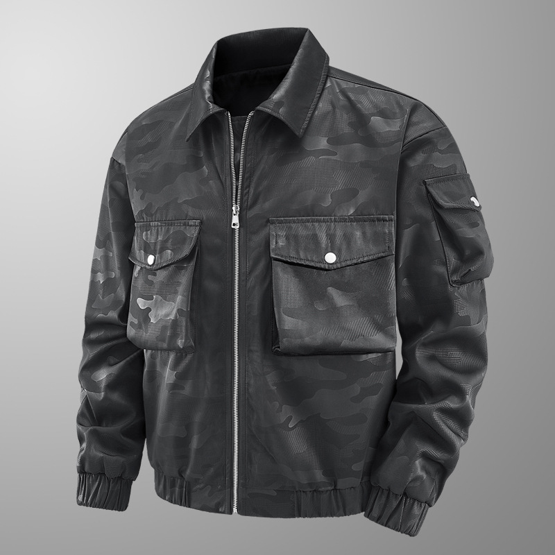 春と秋のメンズカジュアルシンプルな工装ジッパー復古飛行服野球襟迷彩ジャケット