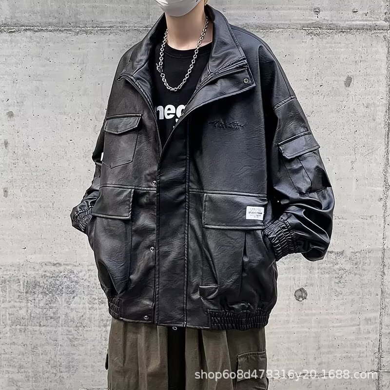 2024新型潮牌pu皮ジャケット皮衣革ジャケット爆帥機関車コート春秋新型男性