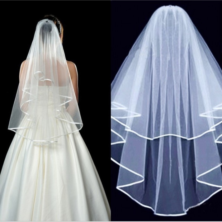 特価の卸売りの新婦の結婚のベールの影楼の撮影の写真の旅は形を飾って短い金の白色の硬いネットのベールを飾ります。