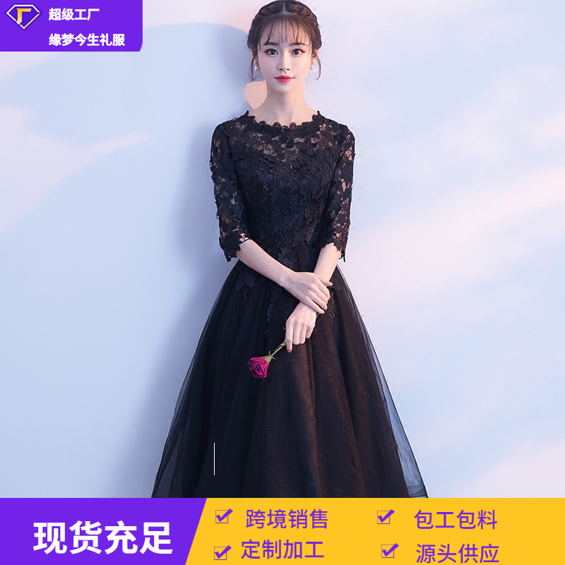 卸売イブニングドレス2026冬新作ミディアム丈ドレスおしゃれな中袖ブライズメイドドレスワンピースドレス女性用