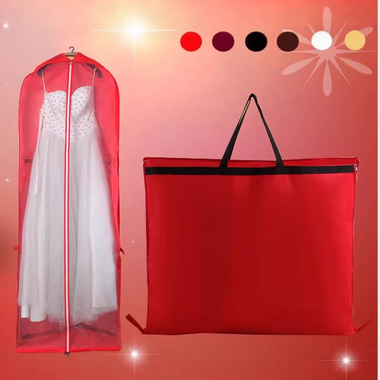 工場直販卸売折りたたみポータブルウェディングドレスダストカバーは、ロゴを印刷できるマルチカラーダストカバーをサポートできます