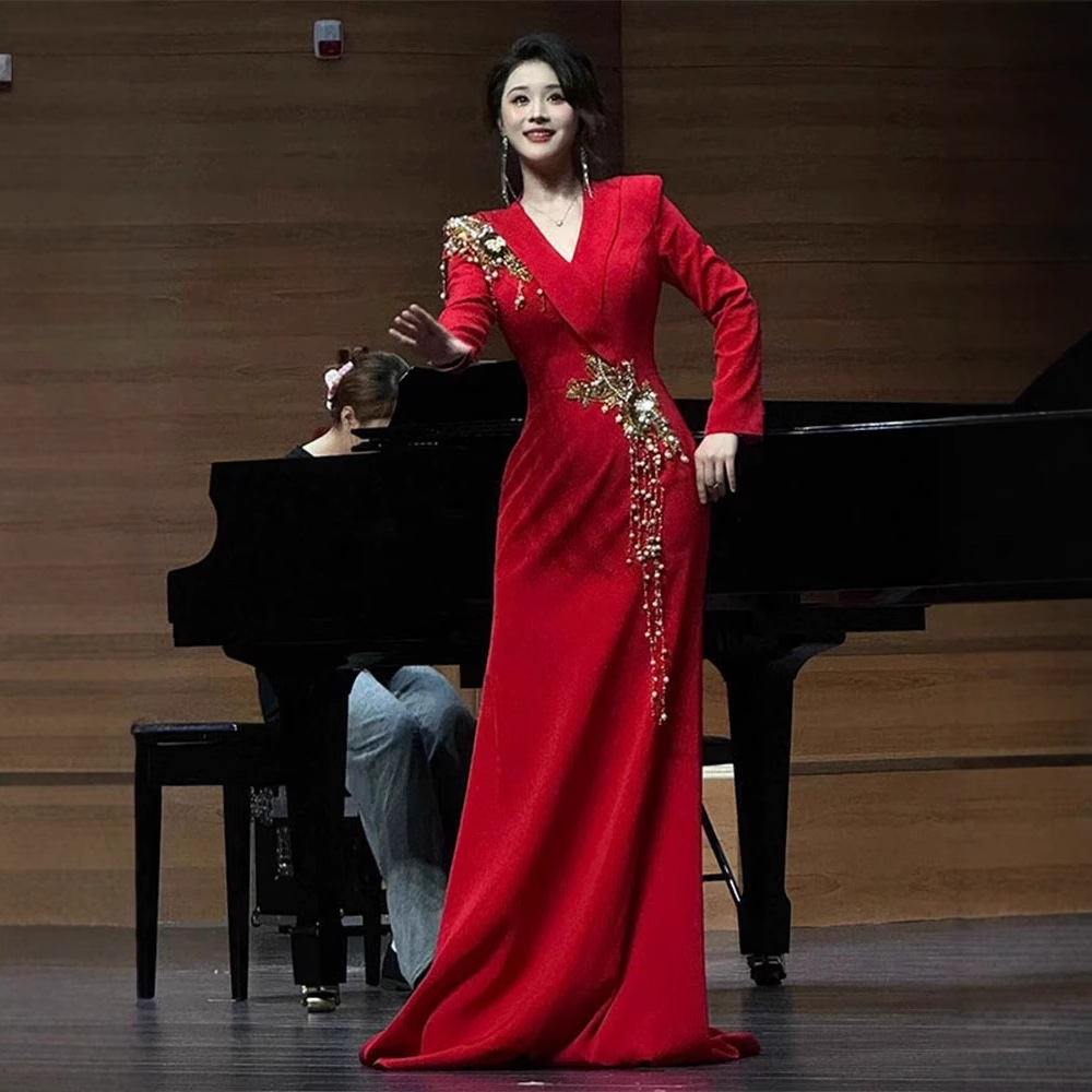 大合唱団のタキシードの女性2025春の新型現代成人公演服は司会者の指揮長を朗読します。