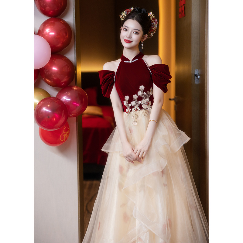 新中国式チャイナドレス敬酒服花嫁2025新型婚約結婚ドレス女性プリンセススカート高級感回門宴