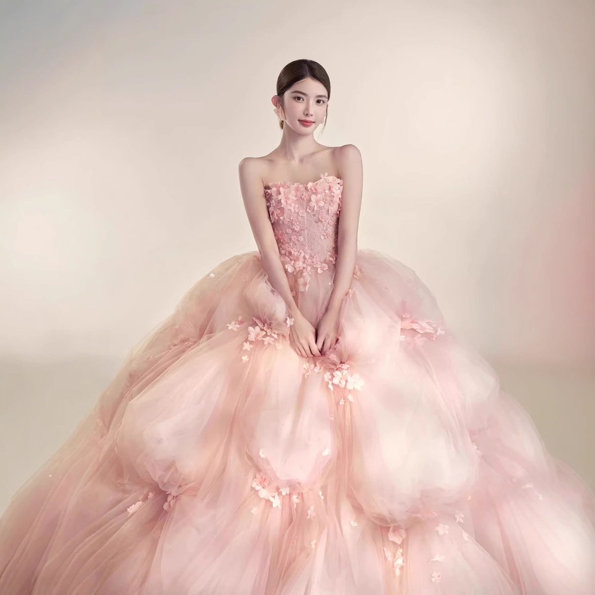 影楼の新型の個人の甘いドーパミンのピンクの蓬蓬のスカートの小さい清新な少女感の誕生日のパーティーの撮影の服装