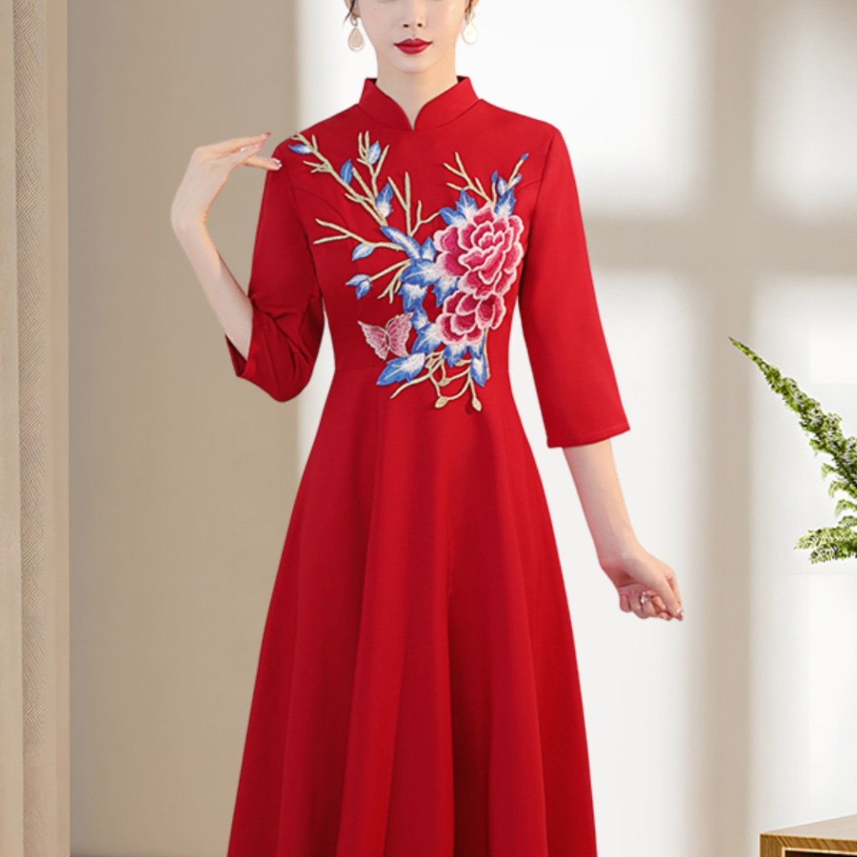 ファッション新作刺繍レトロチャイナドレス礼儀迎賓学生司会授賞式大合唱団体ロングドレス秋