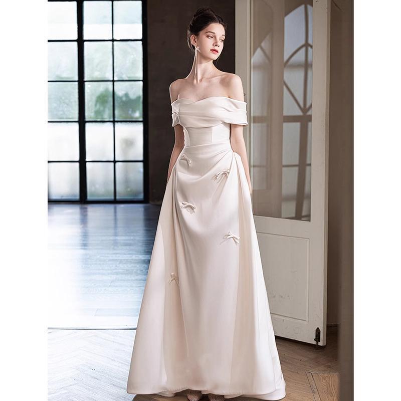軽いウェディングドレスの花嫁2025の新しいフレンチサテンのシンプルな肩の婚約ドレスのスカート