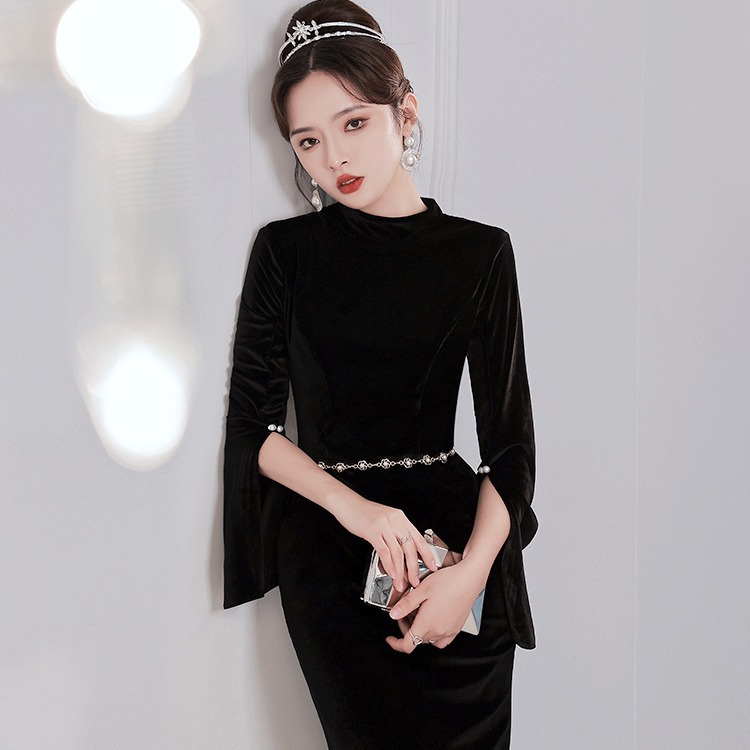 黒のイブニングドレス2025秋新作、上品な年次総会、優雅な司会者、華麗なドレス、メーカー卸売