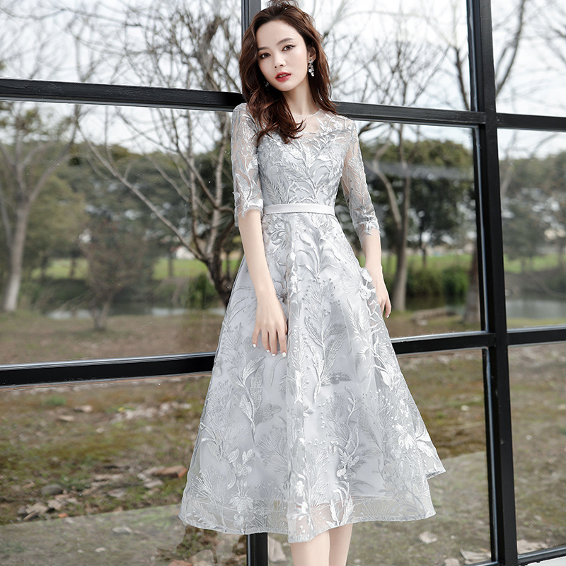 グレーのイブニングドレス 2025年秋新作 日常着としても着られる エレガントなワンピース 軽やかな高級感 アマゾン越境販売