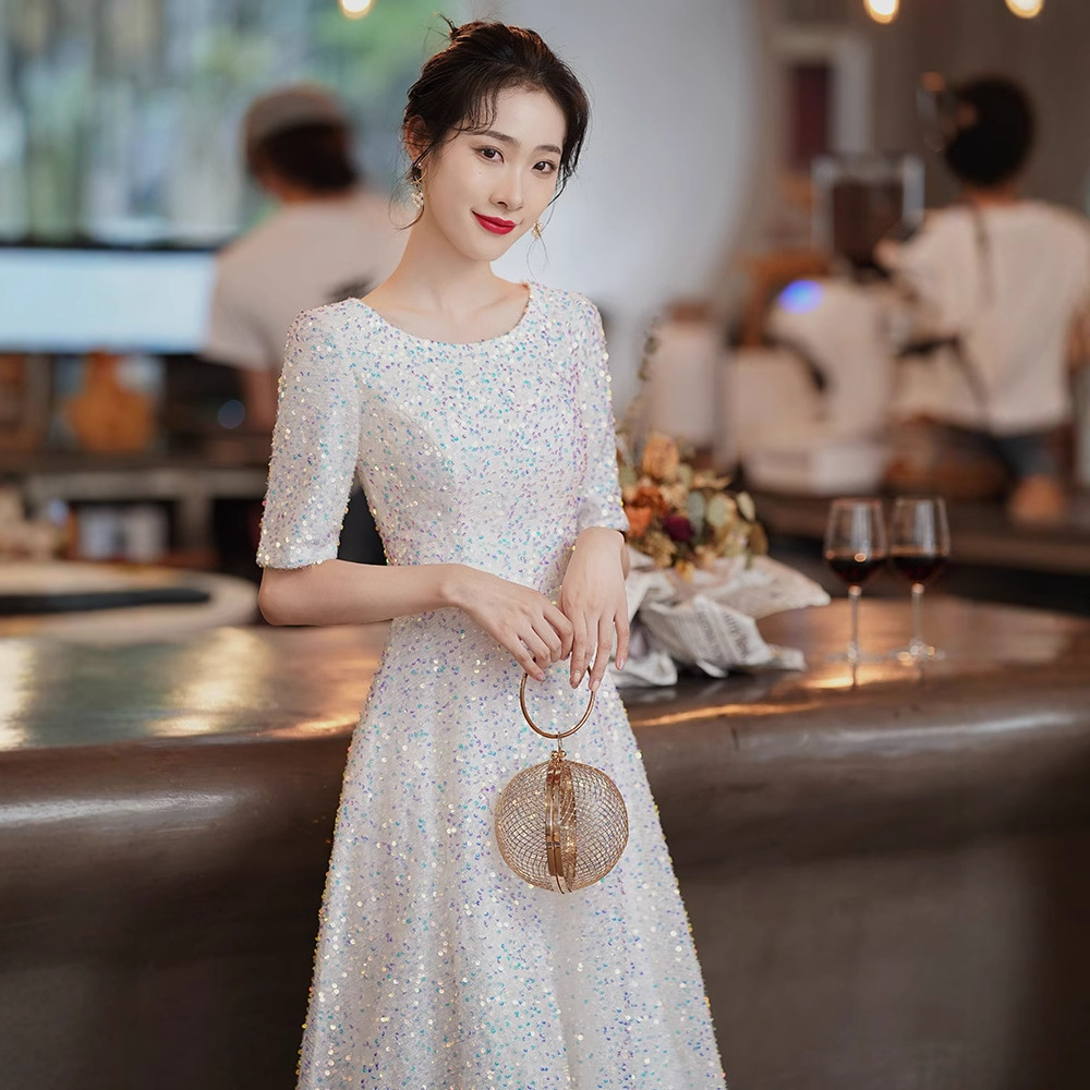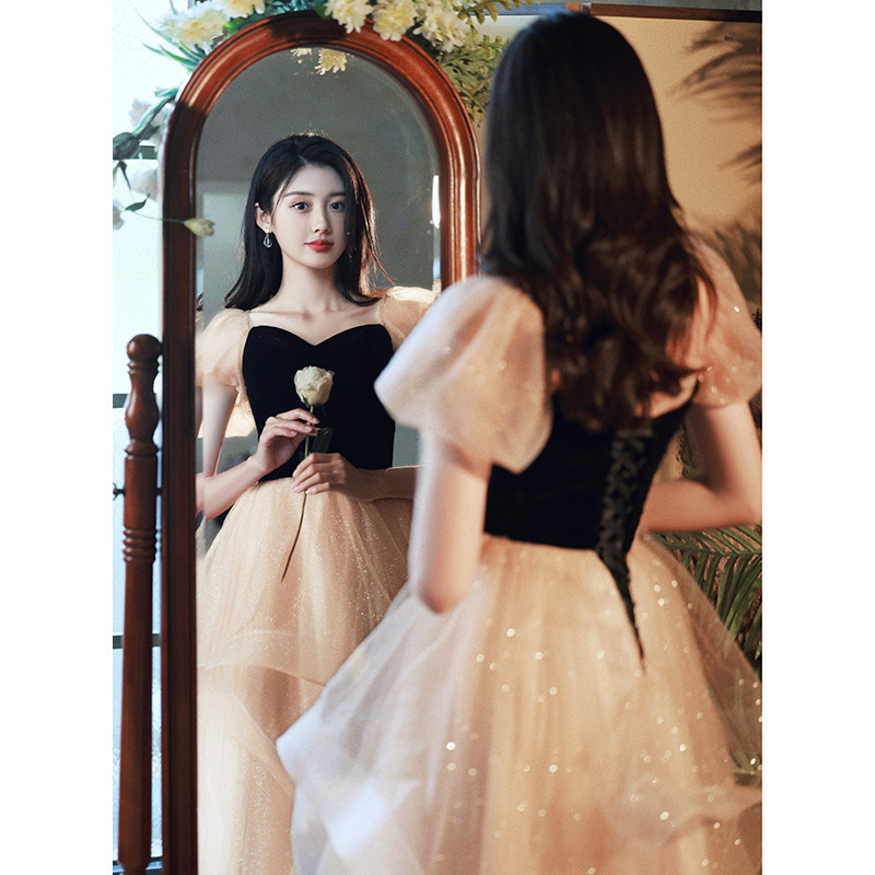 宴会用イブニングドレス2025春秋気質淑女声楽試験司会者用イブニングドレス超妖精逃亡プリンセスドレス