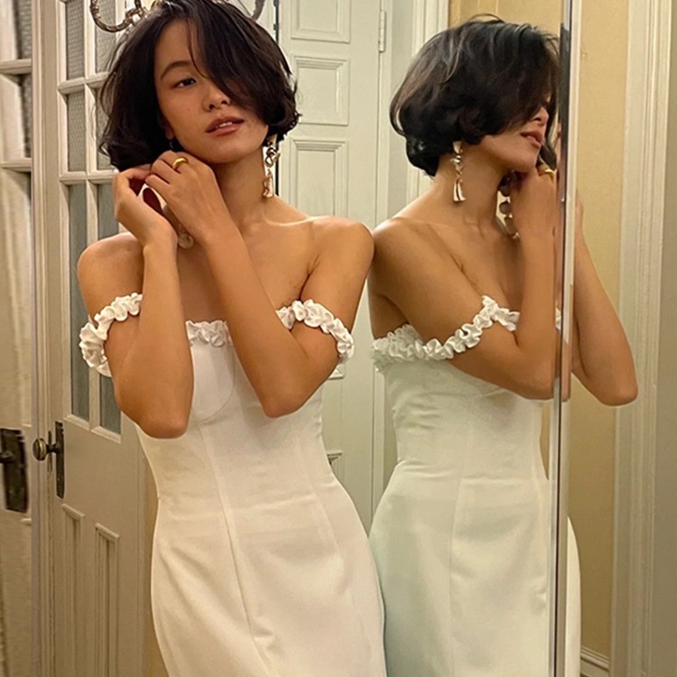 サテンウェディングドレス2025新作 上品なフレンチスタイルの軽やかなウェディングドレス シンプルな旅行撮影用 白いウェディングドレス 普段着としても着用可能 女性用