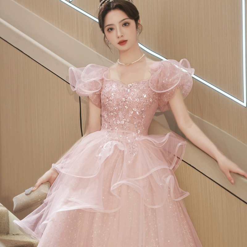 芸考用イブニングドレス2025新作ドレス宴会女性らしい大人のためのピンクの年次総会司会者用イブニングドレス卸売