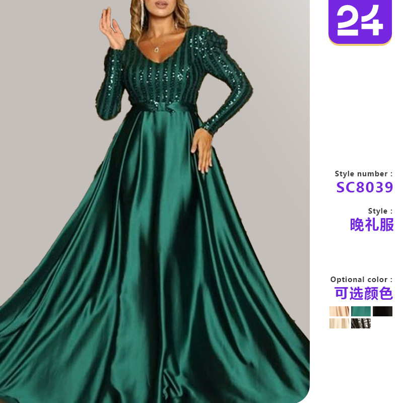 外国貿易イブニングドレススパンコール女性の 2025 新しい夏の気質誕生日ドレスロングホストキャットウォークドレス