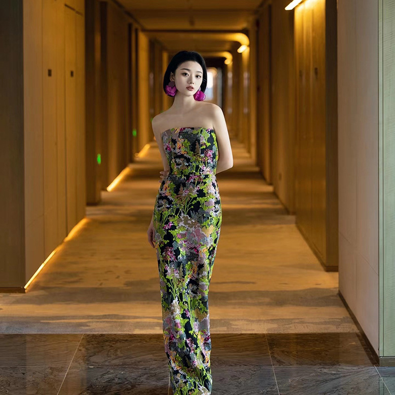 女性用イブニングドレス 2025 新しい宴会高貴でエレガントな気質社交パーティー控えめで雰囲気のあるロングドレス