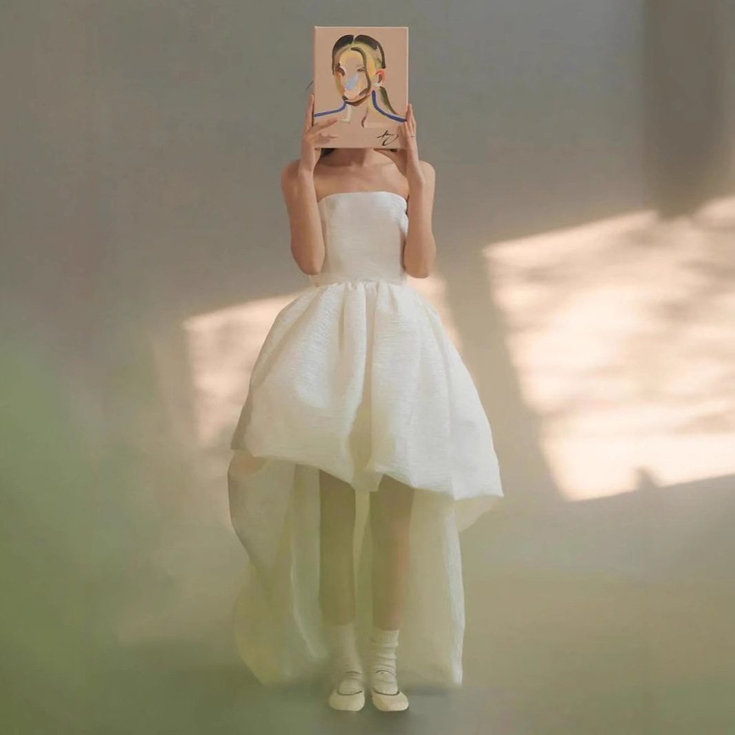 ライトウェディングドレス新しいスタイルのチューブトップスウィートプリンセスチュチュスカート屋外ショートフロントロングバックトラベルフォト宴会気質イブニングドレス女性用