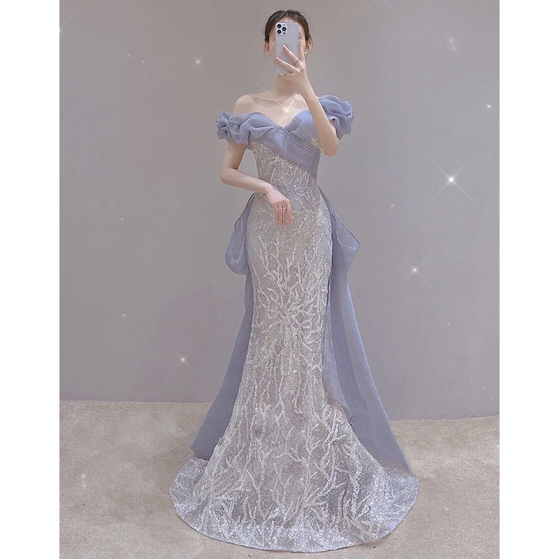 2025年新作イブニングドレス、宴会パーティー、社交界向けロングドレス、司会者用、オフショルダードレス、秋のエレガントな社交界スタイル