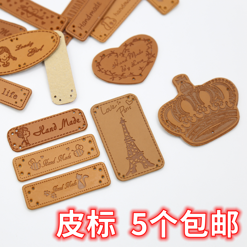 PU レザーラベルスカーフ帽子バッグ装飾修理布ステッカー手作り DIY インデント小さなラベル 5 個送料無料