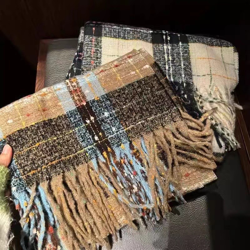 2025年新作 雰囲気のあるスカーフ 格子柄 冬用 レディース カップル向け 保温性抜群 多用途 ショール フリンジ付きネックウォーマー 厚手