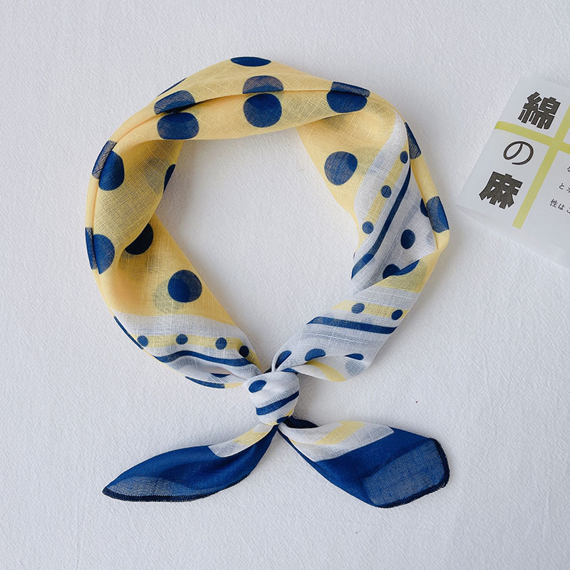 甘い波点綿麻の小さい方の巾2023の新型の百掛けの小さい襟の巾58x58のマフラーの女性の韓国版のヘアバンドの装飾