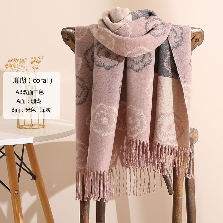 カシミアのような肌触りの女性用スカーフ、冬用暖かいネックウォーマー、高級アウターウェア、エレガントな両面厚手タッセルショール、2WAY