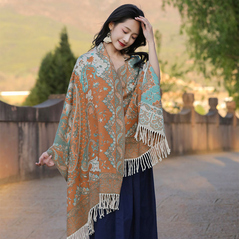 マフラーの女性の新型ボヘミアン風雲南大理旅行はカシミヤのストールの女性の文芸の腰の果実のマントの卸売りをまねます。