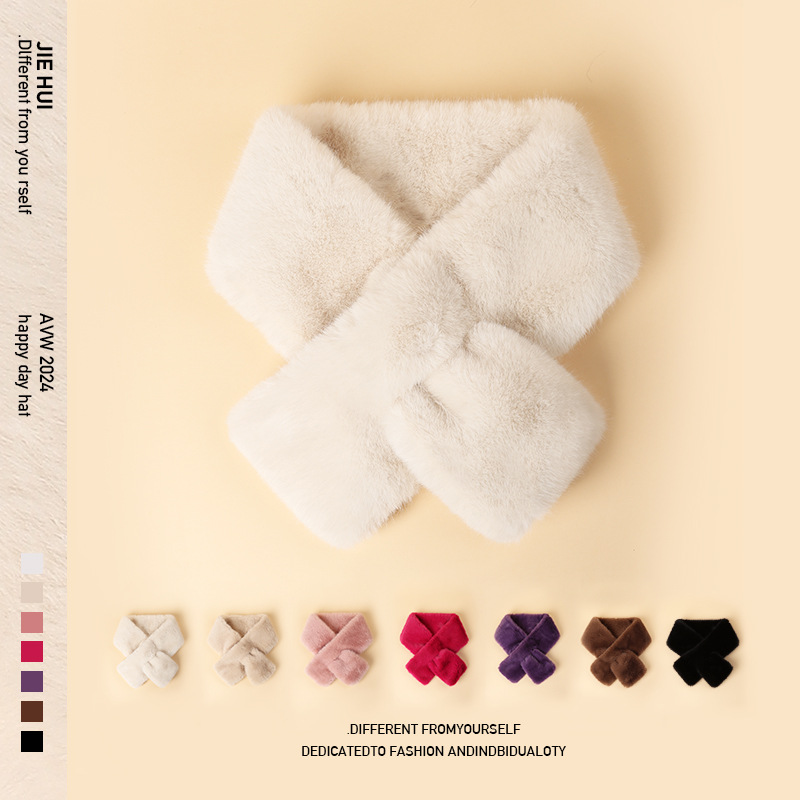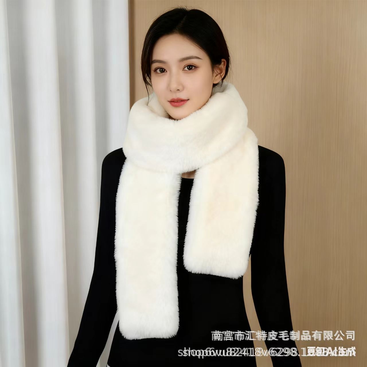スカーフ新しい豪華なスカーフ女性の冬模造レッキスウサギの毛皮厚く暖かい多用途毛皮の襟シンプルなクロススカーフ