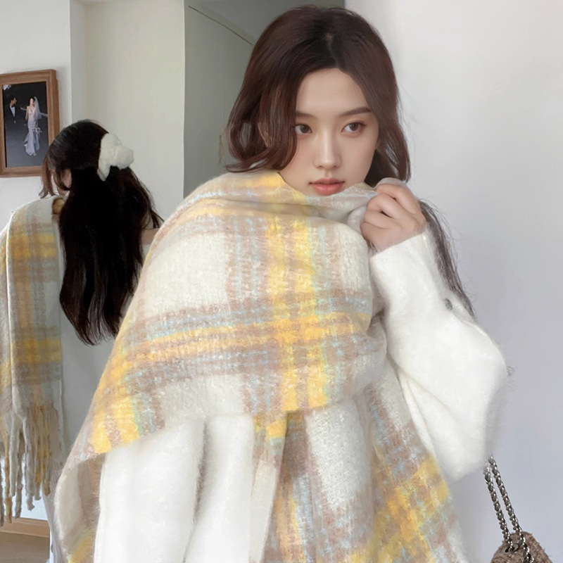 ソリッドカラーモヘアスカーフ女性の冬 2025 新しい暖かく厚みのある韓国語バージョン多用途学生ロングスカーフショール