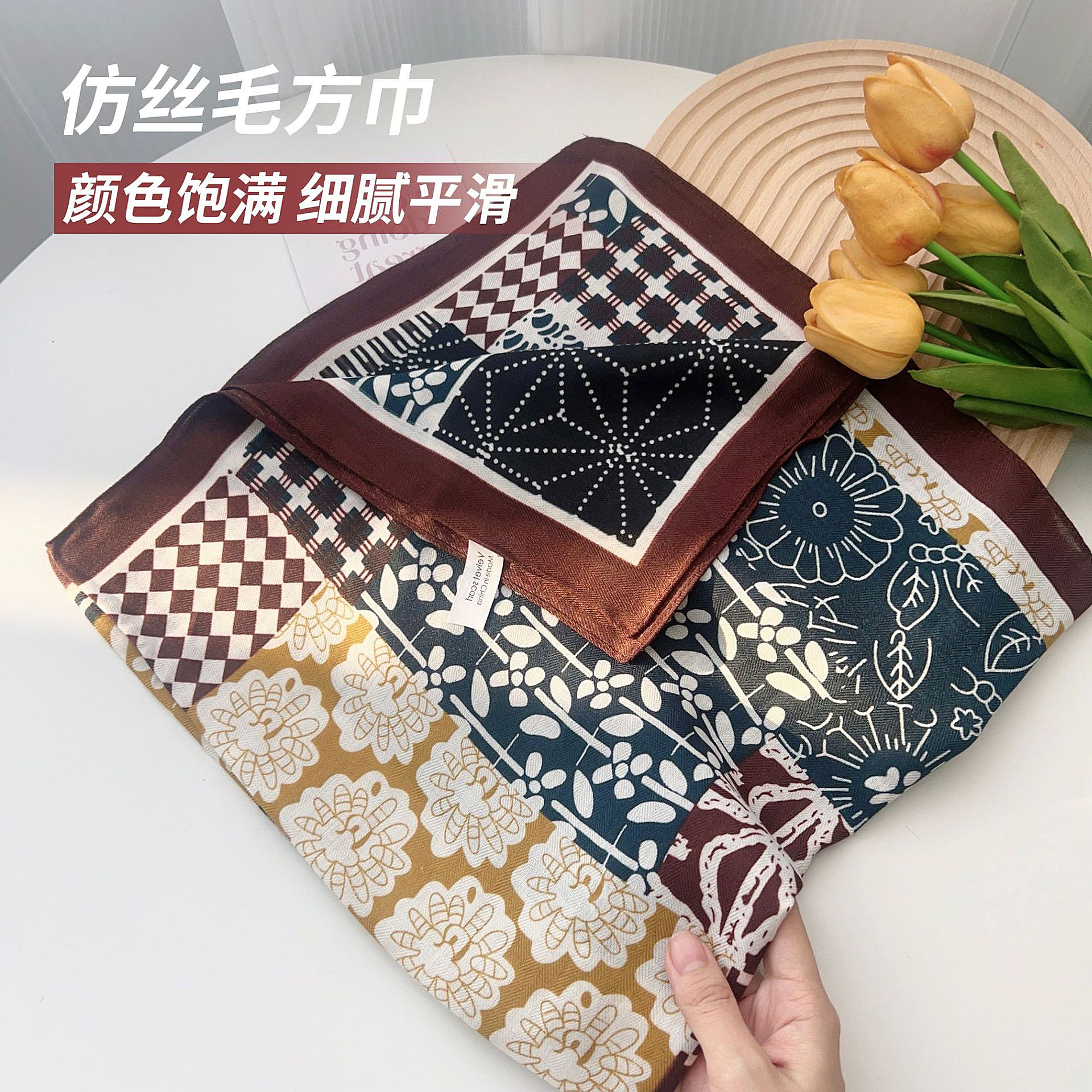 秋冬新作民族風腰果頭巾高級感包頭髪帯模造糸毛手触りシルクタオル首保護スカーフ女