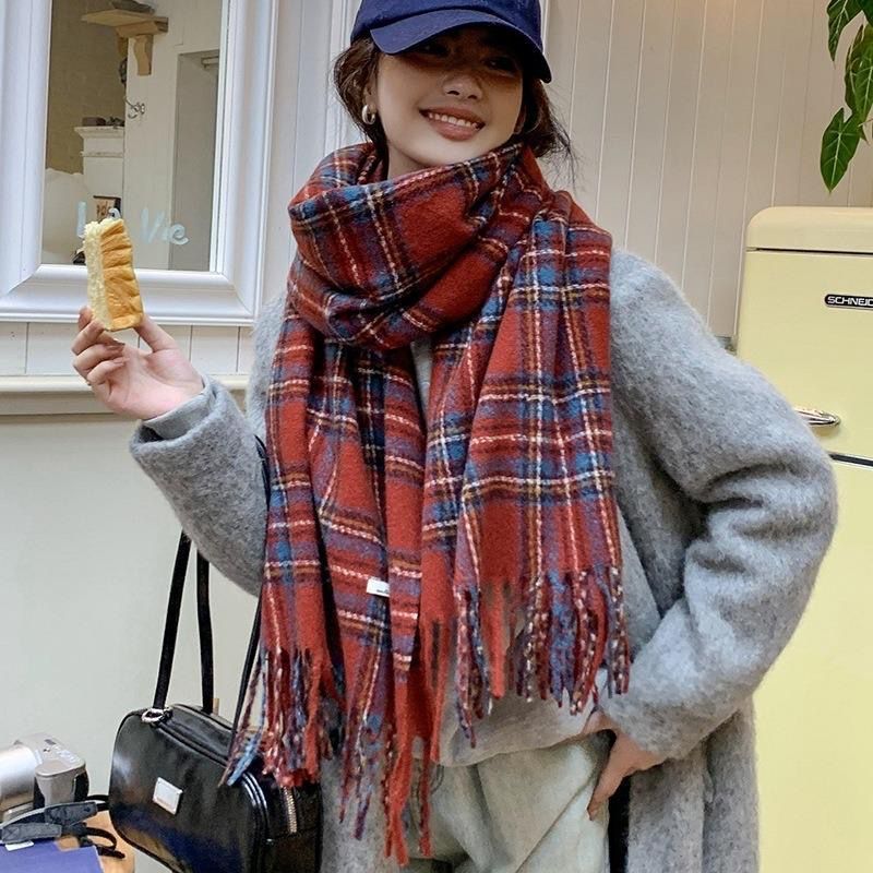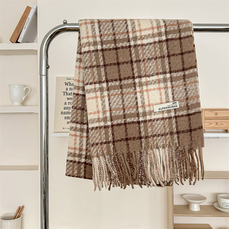 2024新型馬海毛格子マフラー女性秋冬は保温韓国版学生の百合流蘇が首を囲んでいる