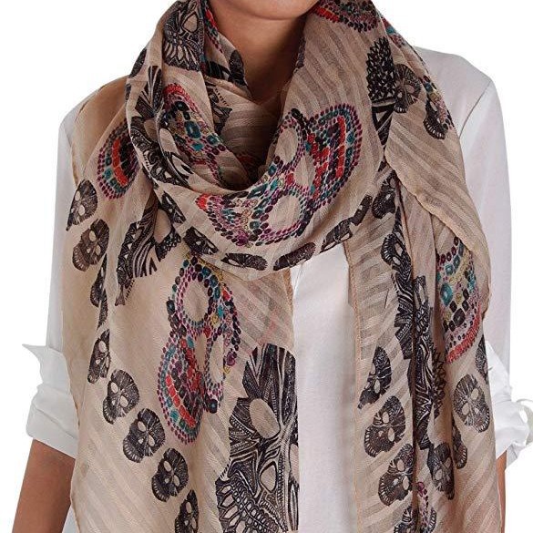 春と秋の斜紋綿のカラーの鬼頭のマフラーの頭蓋骨の海辺の休暇の日よけのエアコンのストールのマフラーの女性の人気があります。