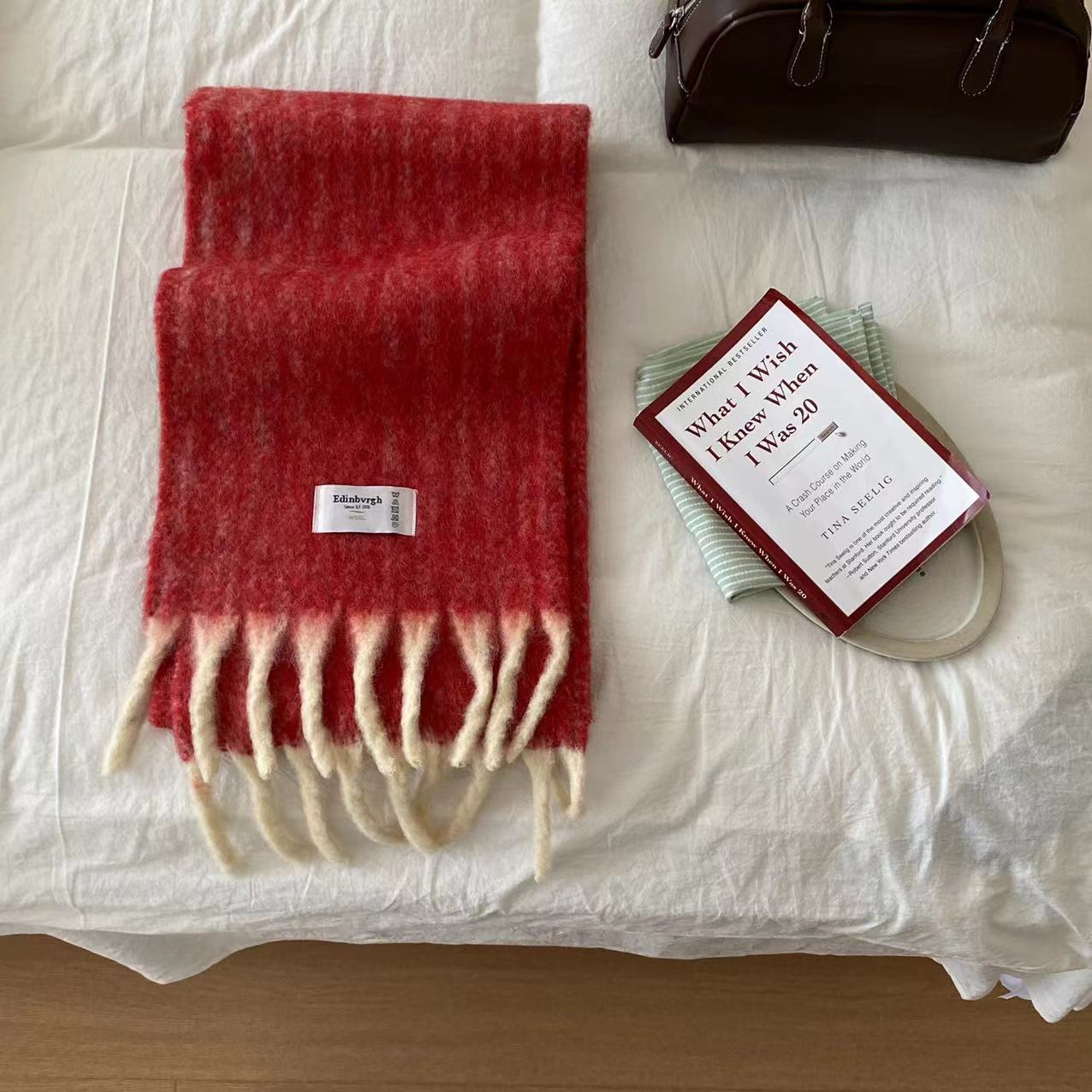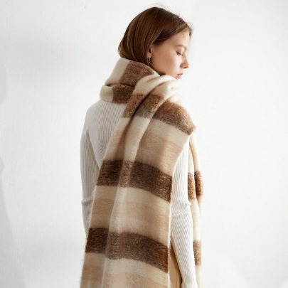 新型の馬海毛マフラー冬の女性の高級感は色のストライプの韓国式のカップルを合わせて保温して厚いマフラーのショールをプラスします。