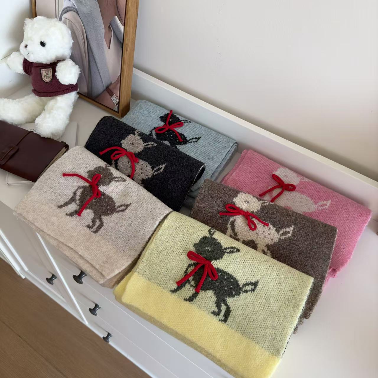 2024新型日系かわいい鹿蝶ネクタイのマフラー女性秋冬保温百合学生が首を囲んでいる