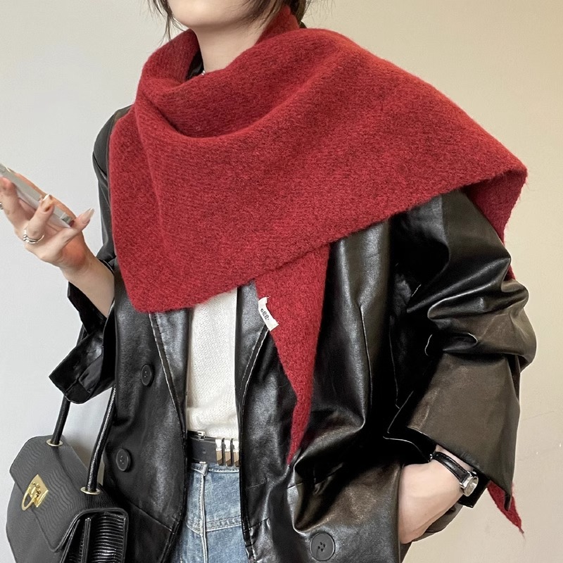 2024新型冬高級感マフラー赤いニットストール女性フレンチレトロなマフラー気質三角タオル潮
