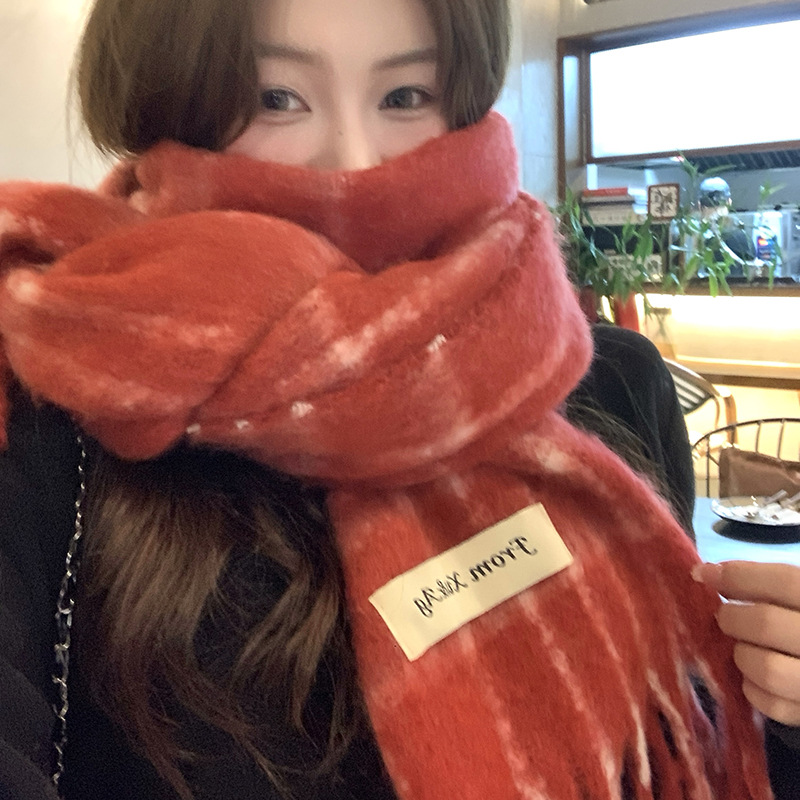 マフラーの女性は秋冬の2024の新型の安カラットの赤い保温の韓国版の格子のフリンジの毛のストールを引っ張ります。