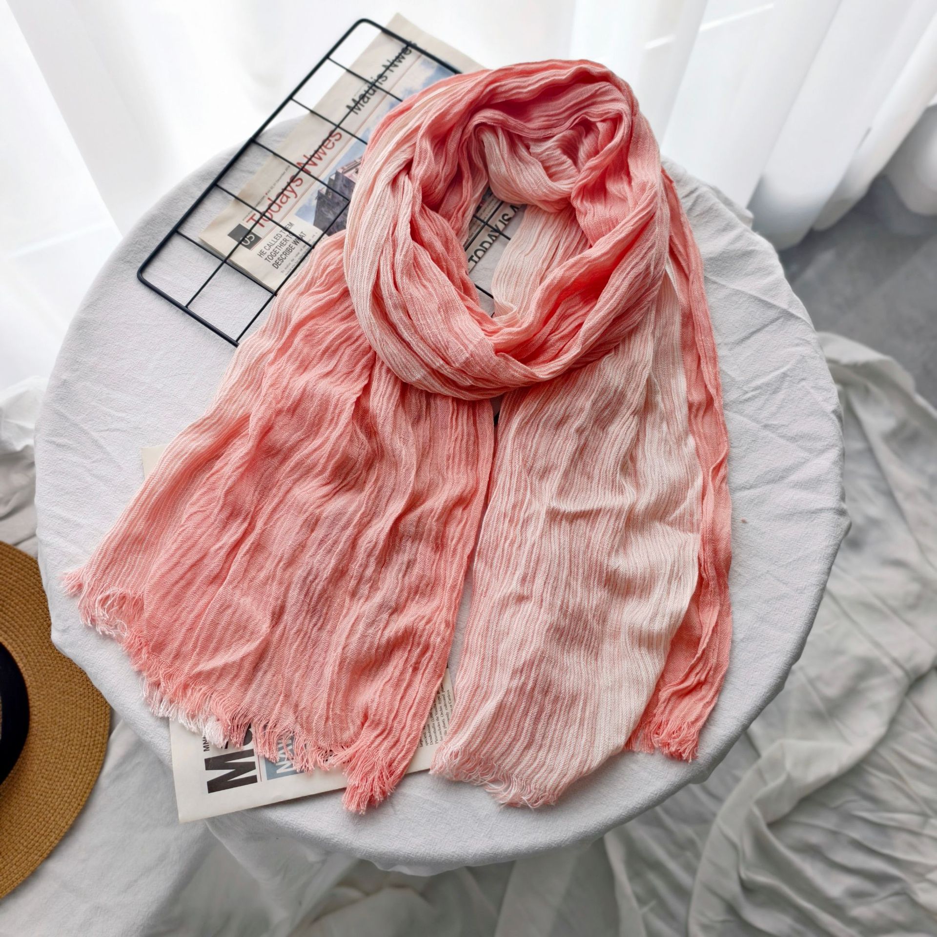 綿とリネンのスカーフ秋と冬の新しい文学的なプリーツレトロな手作りの汚れた染め無地クロスボーダー外国貿易メンズスカーフ