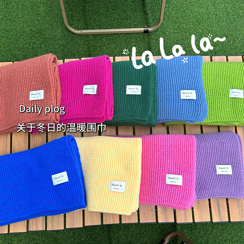 韓国版純色ニット厚いマフラー秋冬ファッション百合高級感学生マフラー保温カップル色