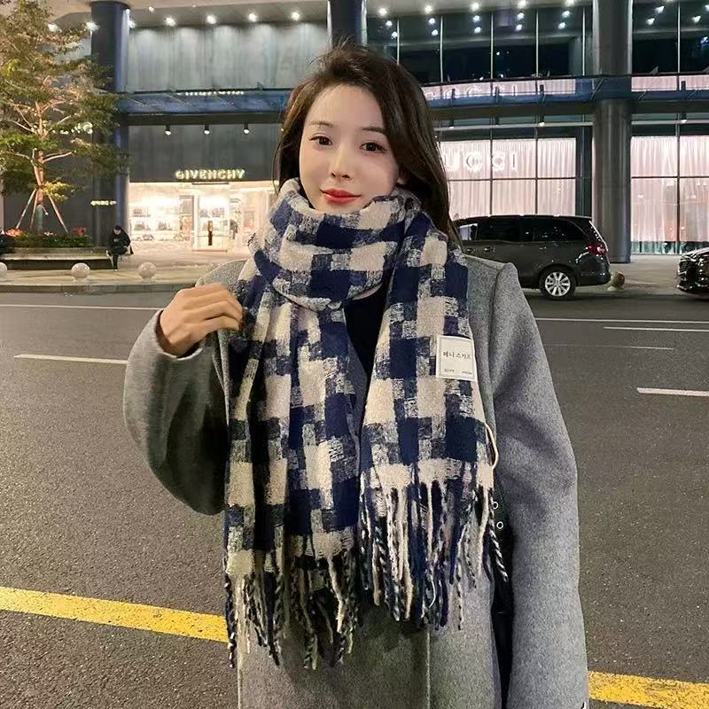 新しいチェック柄カシミヤスカーフ日本と韓国の暖かいスカーフファッションタッセル秋冬スカーフショール
