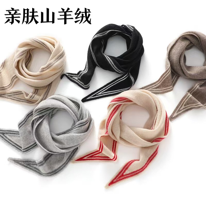 肌に優しいカシミヤ混カラーブロック三角スカーフ、柔らかく肌に優しく暖かいカシミヤニットスカーフ、大量在庫あり、カスタマイズ可能