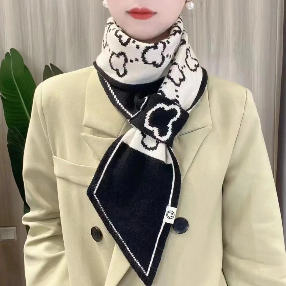 2023マフラー冬の女性の新型白黒クラシック保温百合韓国版高級感マフラー両面防寒