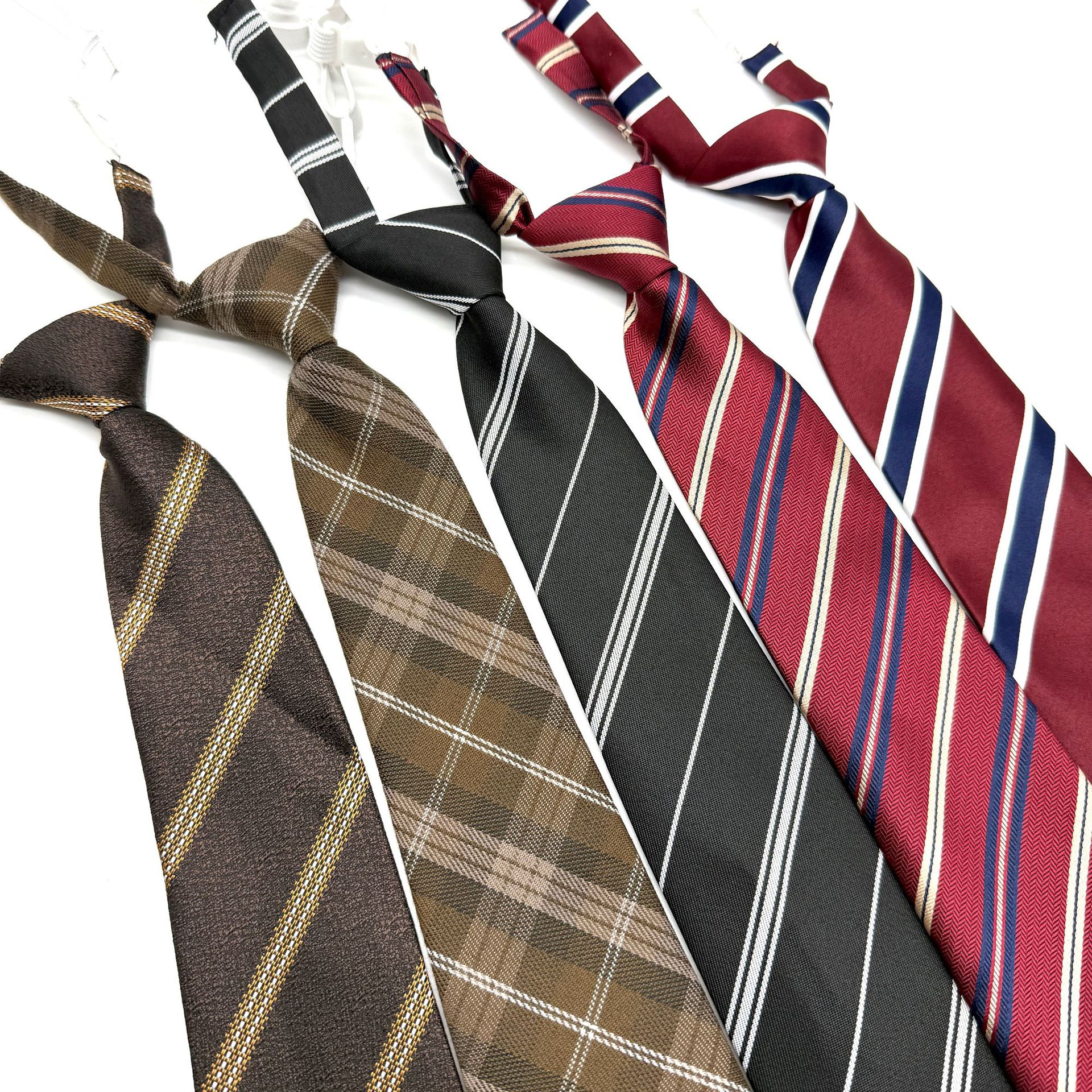 黒男女共通トレンド怠け者ファスナーネクタイJK制服学生学院風日系格子ネクタイ赤