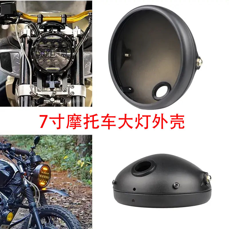 フロントライトヘッドライトリアカバーバイカー7インチヘッドライトシェルハーレーledヘッドライトブラックライトシェル