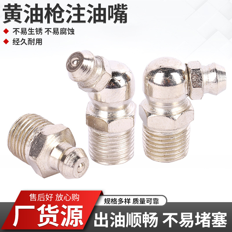 卸売グリースガン注油ノズル 鉄製ニッケルメッキグリースノズル グリースガンノズルヘッド 鉄製ニッケルメッキストレート型曲げ型注油ノズル