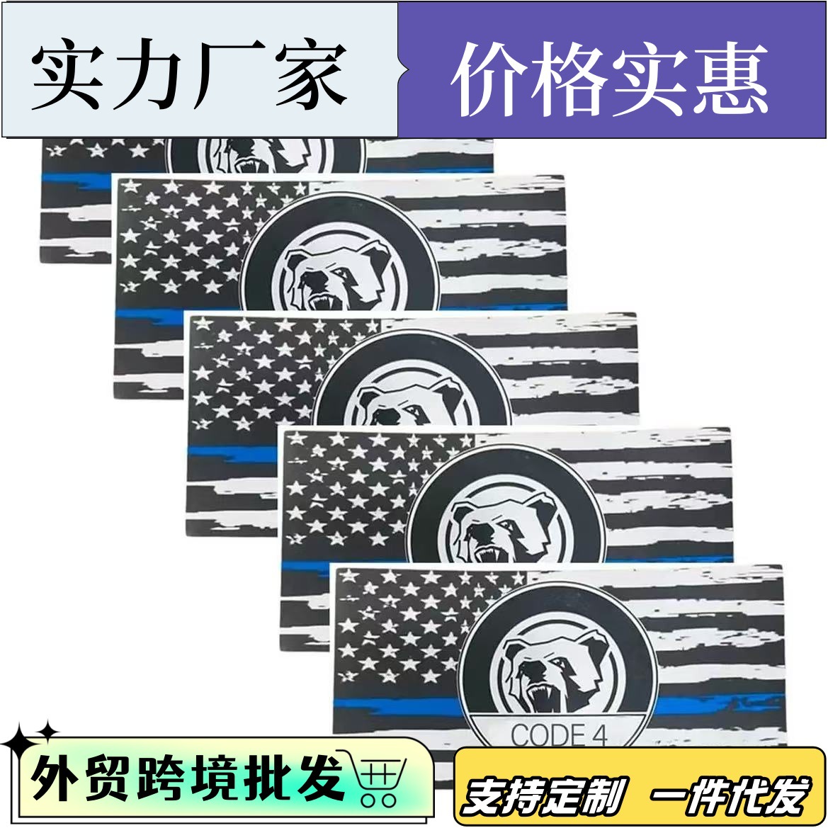 クロスボーダーサイクリング用品ブルーストリップアメリカ車のステッカーブルーとブラックアメリカ国旗ステッカー車とオートバイのラテアートステッカー