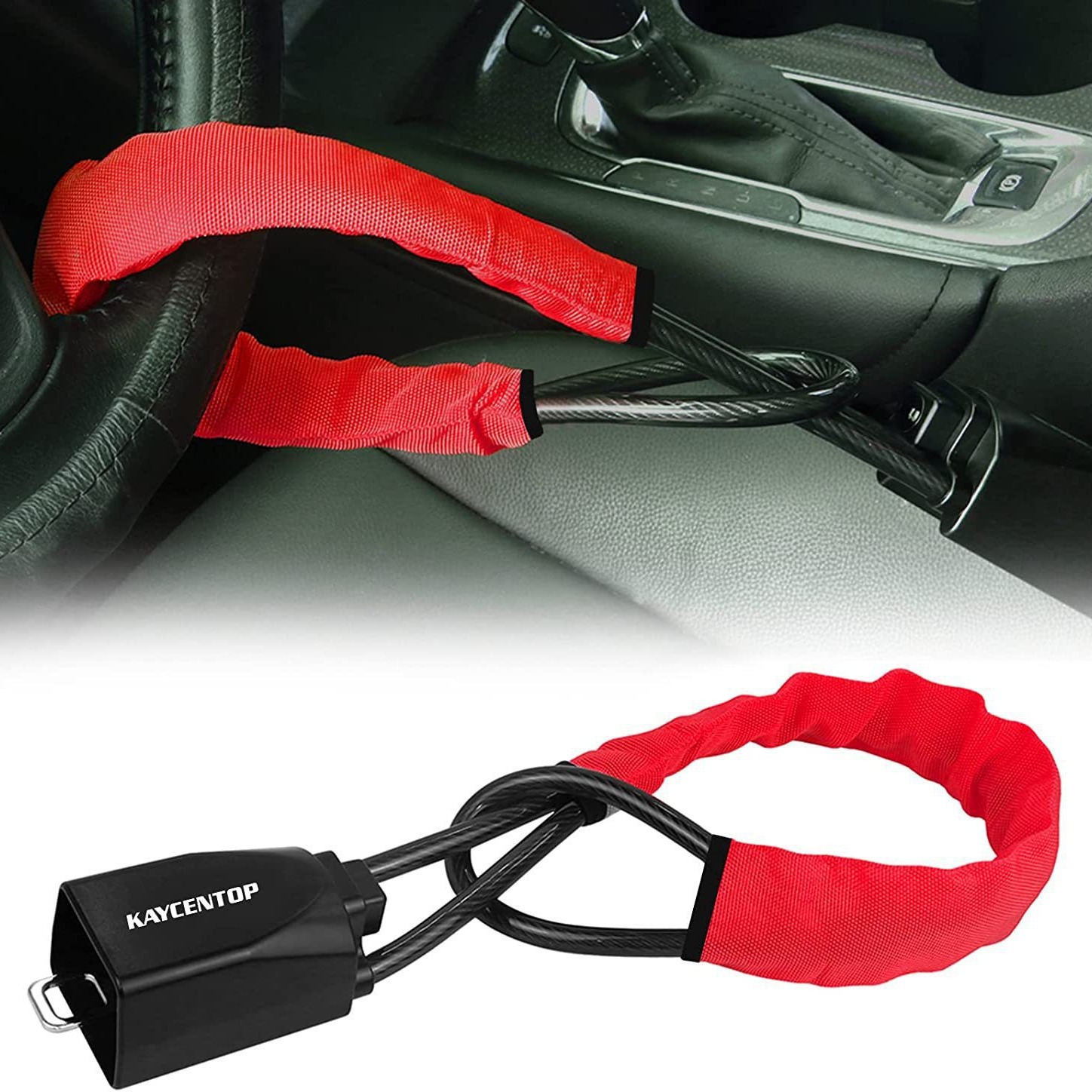 車のステアリングホイールロックワイヤーロープシートベルトロック車プロテクターキーロック付き車盗難防止ステアリングホイールロック