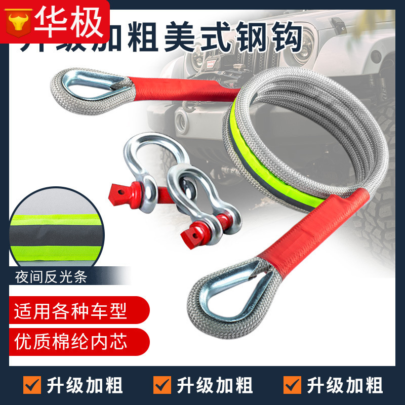 自動車牽引ロープ救助ロープイーグルフック牽引ロープは、耐久性3メートル4メートル5メートルの二重トレーラーSUVを強く厚くする