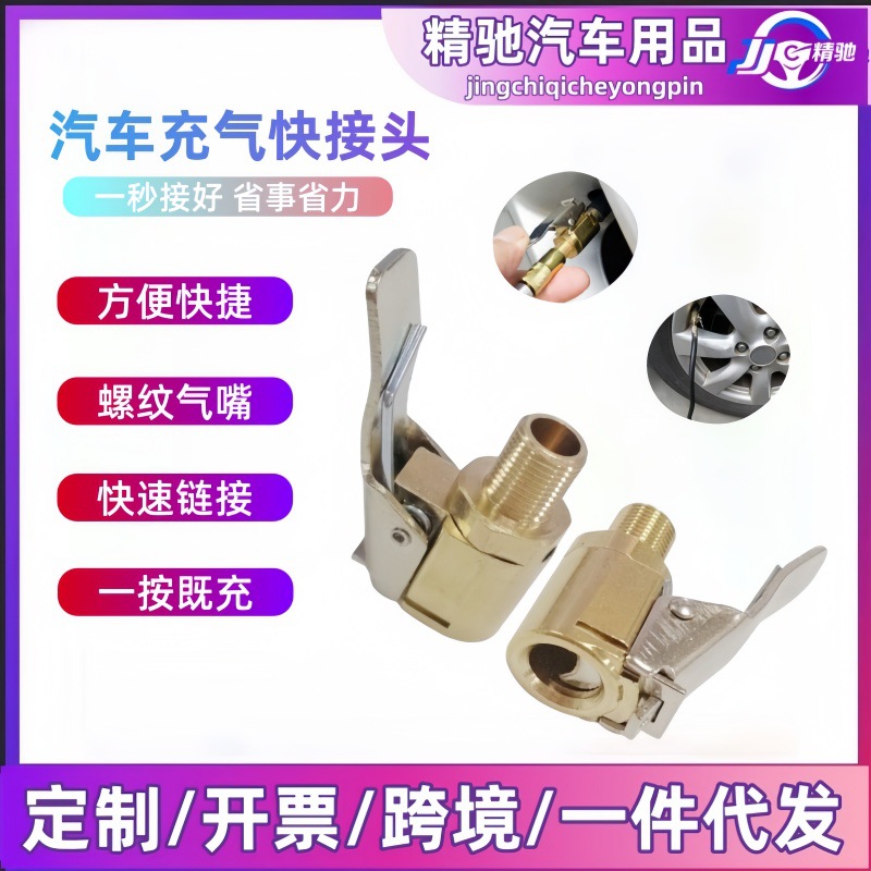 車の上の空気入れはアメリカ式の空気入れの口の回転の継ぎ手の急速な転換のヘッドのクリップ式のタイヤの空気入れのポンプのプラグに接続します。