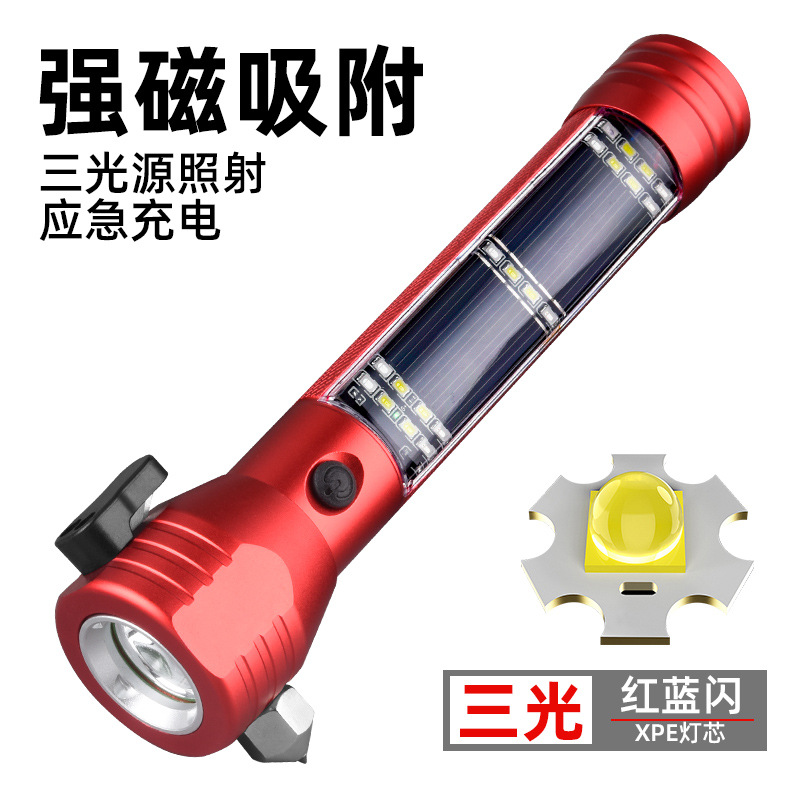 多機能車載安全ハンマー懐中電灯消防破窓器車用修理ランプ強光作業警告灯
