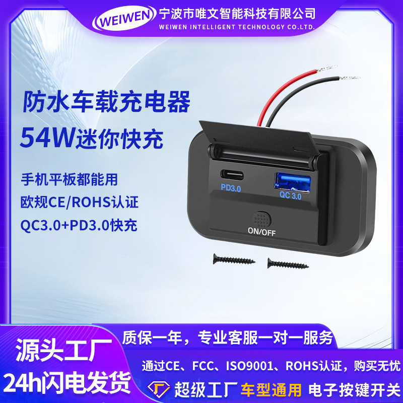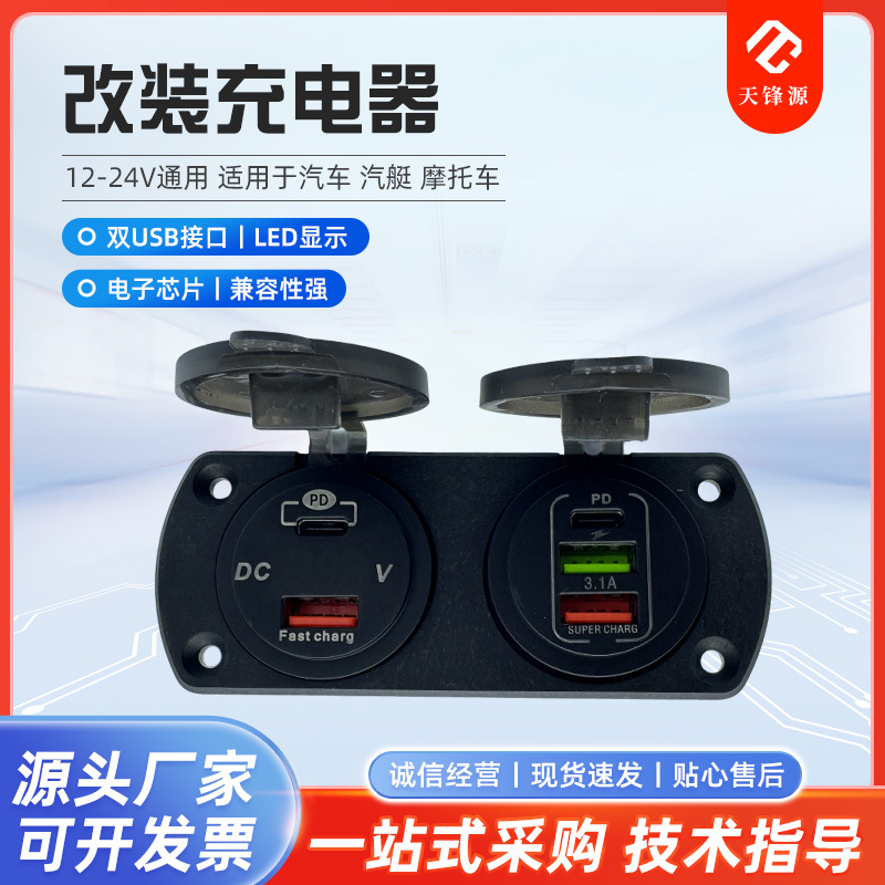 新型改造車載充電器qc3.0 12v-24v多機能汎用型急速充電車載電源母座