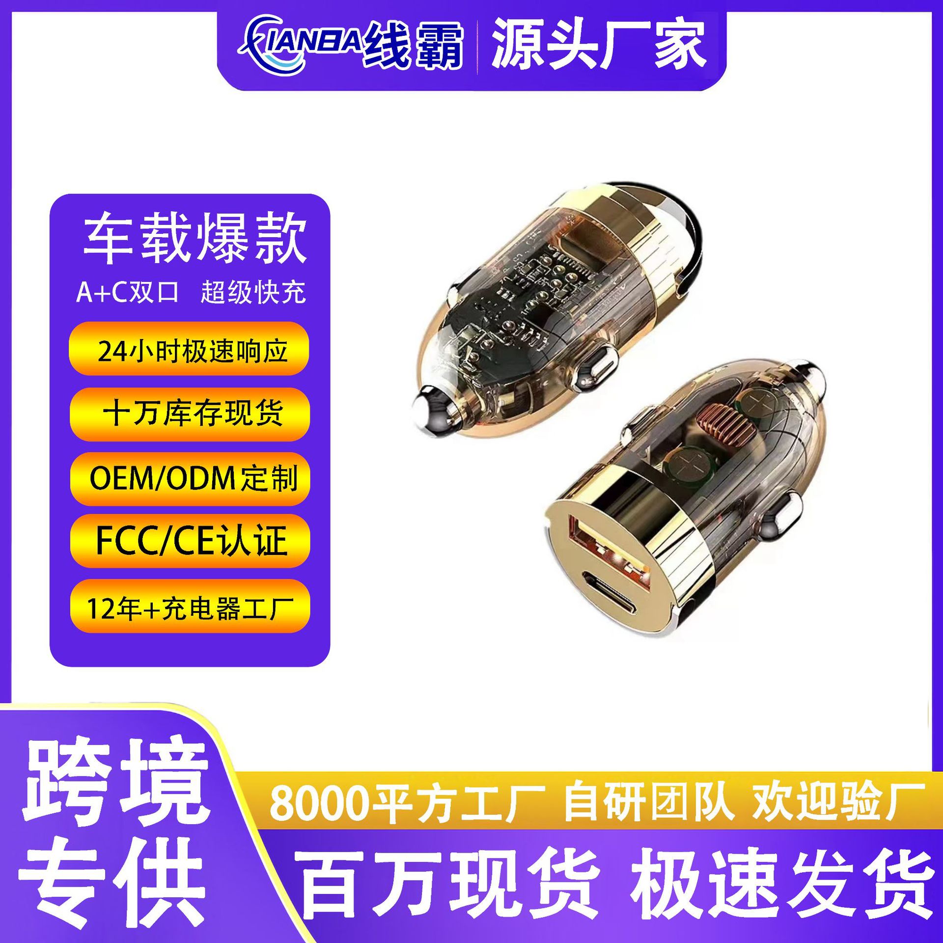 PD38W车载充电器QC3.0车充手机快充头汽车点烟器充电头车载充电器